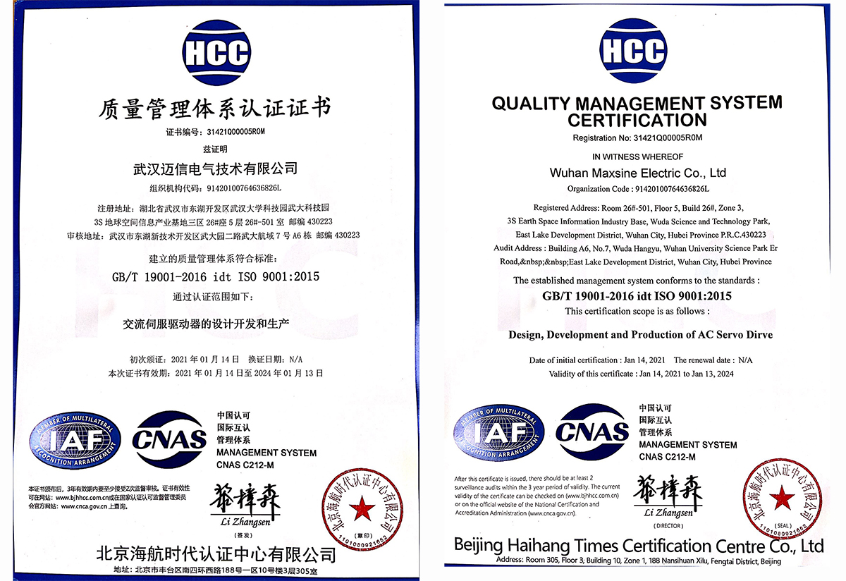 • 質(zhì)量管理體系認證證書 頒發(fā)時間:2021年1月 頒發(fā)單位:北京海航時代認證中心有限公司