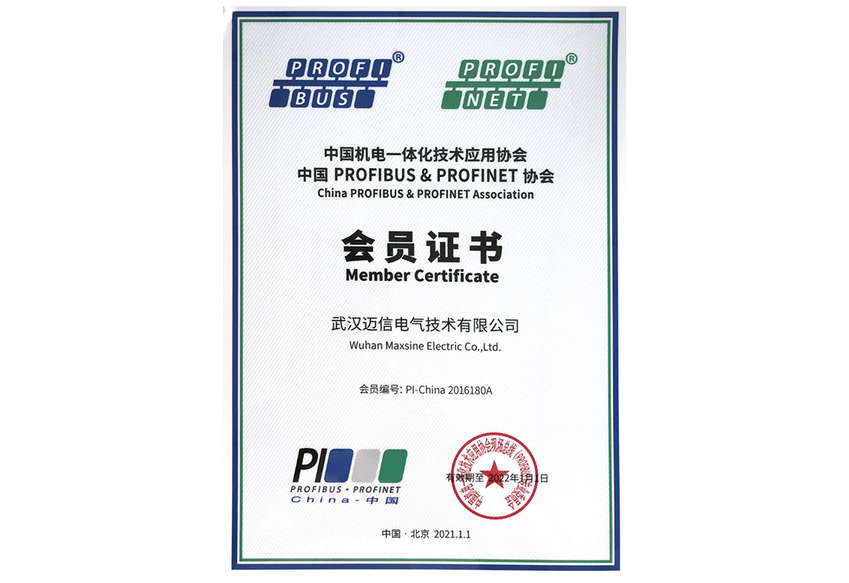 • 2021年度中國機電一體化技術(shù)應(yīng)用單位、中國PROFIBUS&PROFINET協(xié)會 會員證書 頒發(fā)時間:2021年1月 頒發(fā)單位:中國PROFIBUS&PROFINET協(xié)會