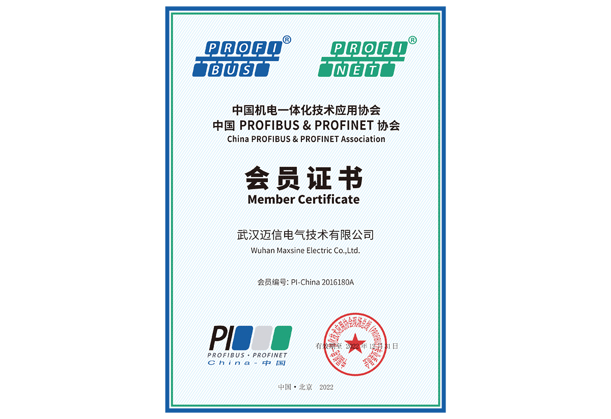• 2022年度中國機電一體化技術(shù)應(yīng)用單位、中國PROFIBUS&PROFINET協(xié)會 會員證書 頒發(fā)時間:2022年1月 頒發(fā)單位:中國PROFIBUS&PROFINET協(xié)會