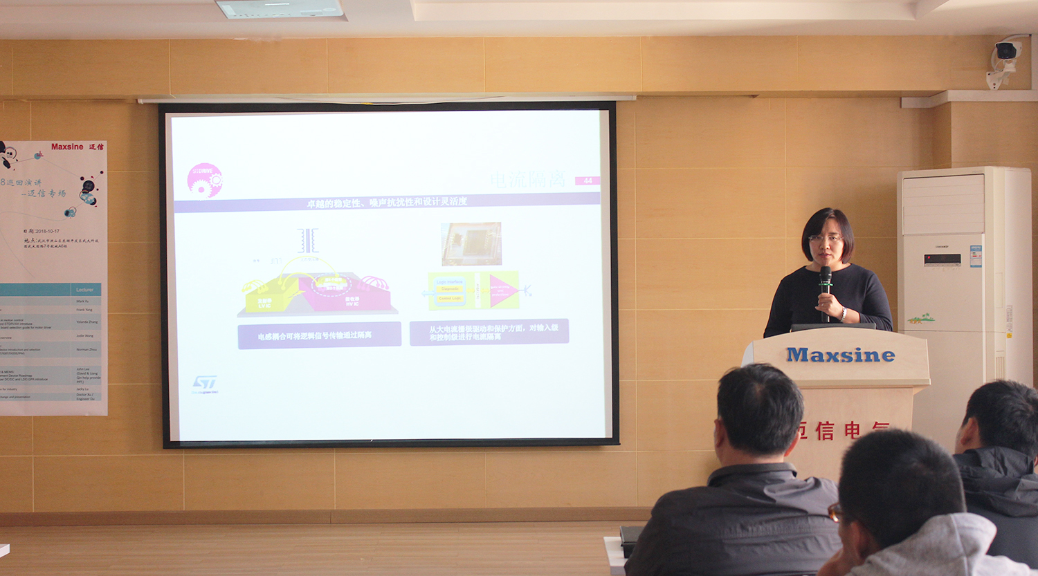 本次交流會由WPG Frank Yang主持,ST亞太區(qū)技術(shù)經(jīng)理Jode Wang、Jacky Lu、Junying Sun、Yolanda Zhang、ST華中區(qū)經(jīng)理Mark Yu、邁信電氣董事長許強博士、邁信電氣總工程師杜佳星等三十多位驅(qū)動與運動控制專家、工程師出席,分享前沿技術(shù)研究并交流行業(yè)技術(shù)方案。