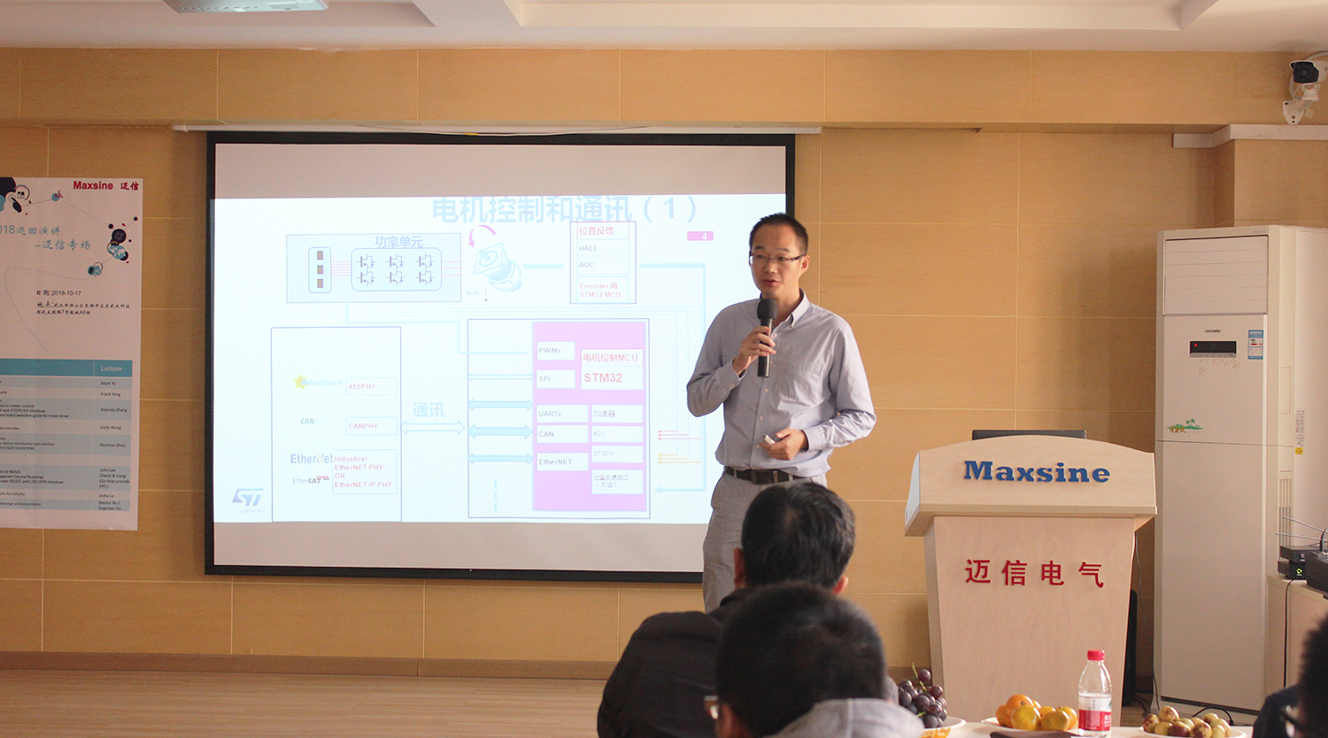 10月17日,ST與邁信電氣技術(shù)交流會在邁信辦公大樓6樓會議廳舉辦。現(xiàn)階段,工控自動化用戶需求高度細分與高度集成兩極化現(xiàn)象明顯、市場需求不斷擴大、應用要求更加苛刻,邁信電氣在今年重點推出EPR6六關(guān)節(jié)多合一伺服驅(qū)動器、EP3E-PN國內(nèi)首套支持PROFINET伺服驅(qū)動器、EP3L低壓直流伺服驅(qū)動器等一系列新方案的基礎(chǔ)上,高品質(zhì)要求的同時也在持續(xù)提升產(chǎn)品性能。