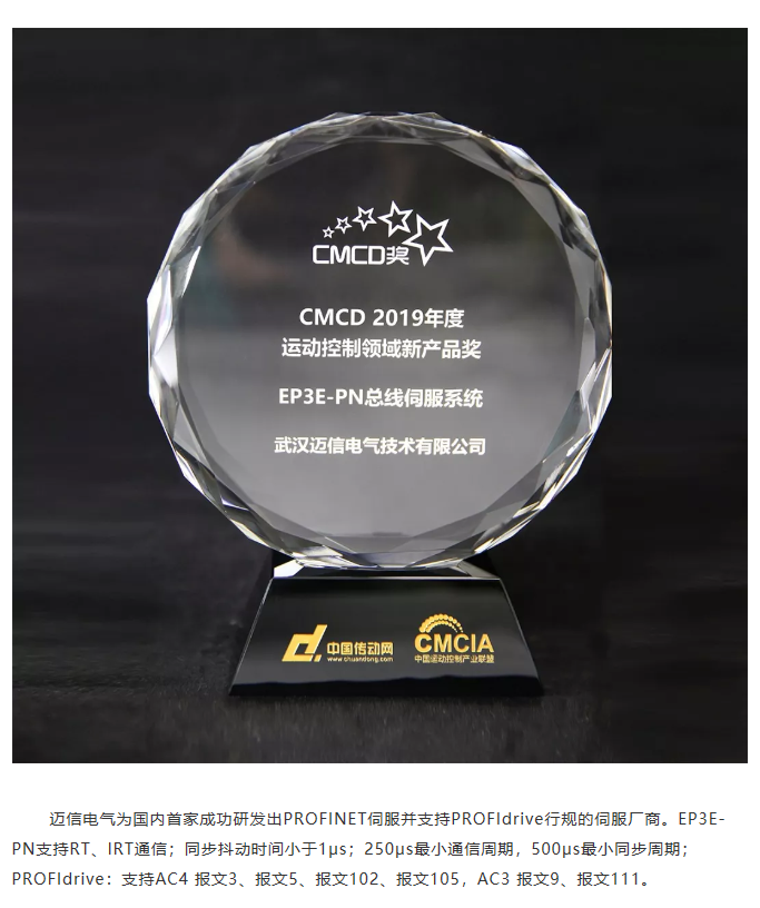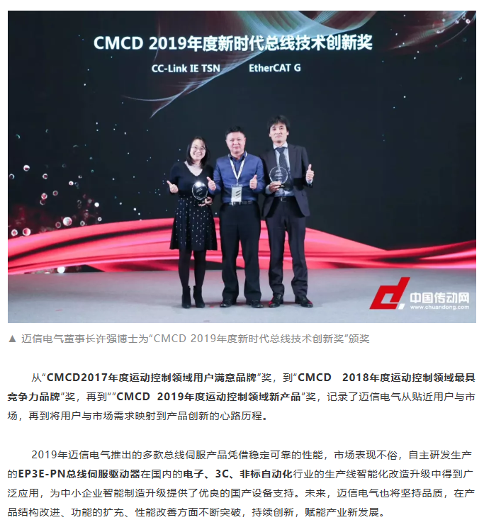 1. 首頁>文章中心>公司新聞>專注產(chǎn)品 順應市場 | EP3E-PN榮獲CMCD 2019年度運動控制領域新產(chǎn)品獎