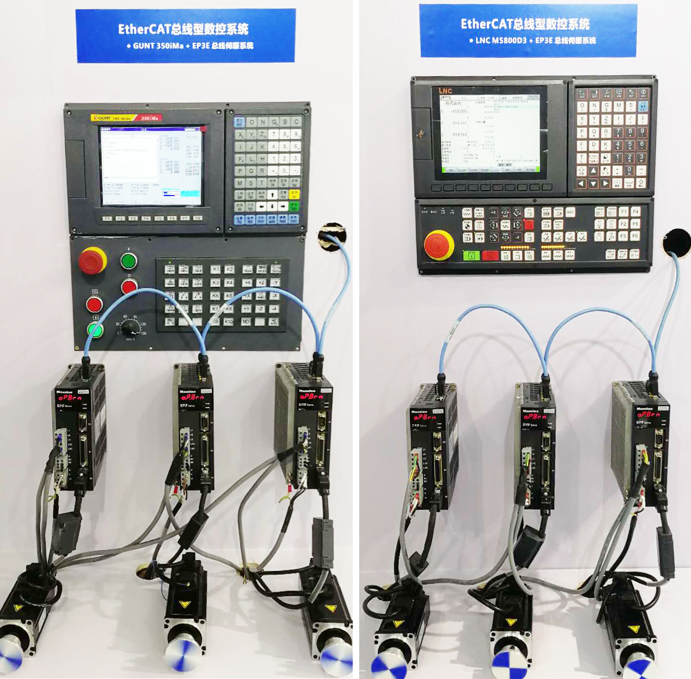 ▲ EtherCAT總線(xiàn)型數(shù)控系統(tǒng)(左圖:GUNT 350iMa + EP3E總線(xiàn)伺服系統(tǒng),右圖:LNC M5800D3 + EP3E總線(xiàn)伺服系統(tǒng))