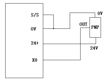 A:把PNP型三線制接近開關(guān)的信號(hào)輸出端接PLC的輸入口如X0,PNP型接近開關(guān)的0V端接到PLC上的0V端子,還要把S/S端子跟0V端子短接起來,PNP型接近開關(guān)的+24V端接到PLC上的24+端子。如果是外接24V電源的話,那么把PNP型三線制接近開關(guān)的信號(hào)輸出端接PLC的輸入口如X0,PNP型接近開關(guān)的0V端接到外接24V電源的負(fù),還要把S/S端子跟外接24V電源的負(fù)短接起來,PNP型接近開關(guān)的+24V端接到外接24V電源的正。