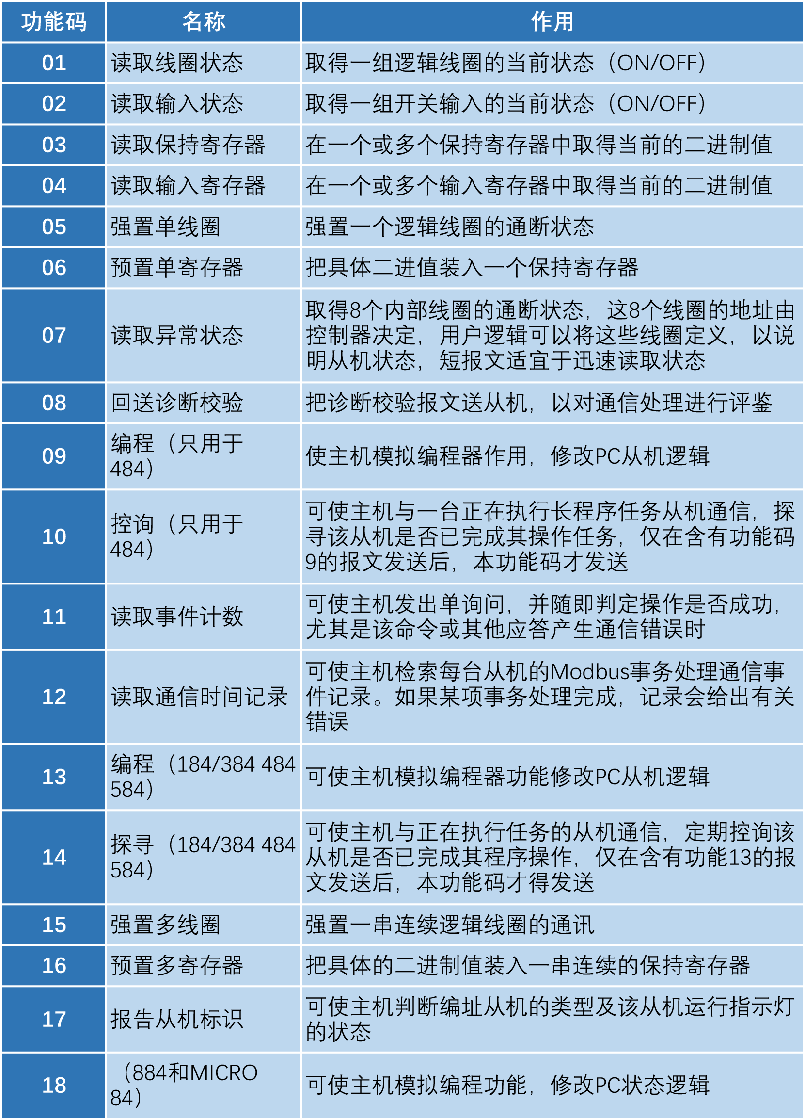 ModBus 功能碼與數(shù)據(jù)類型對應(yīng)表