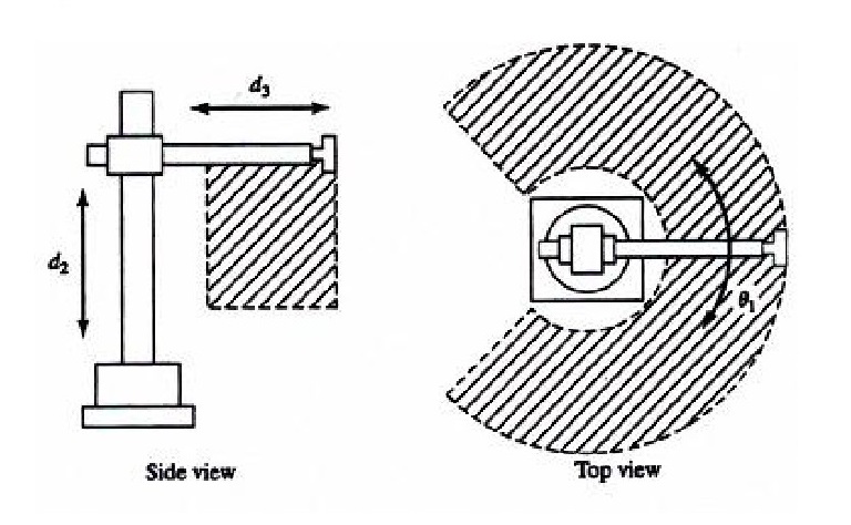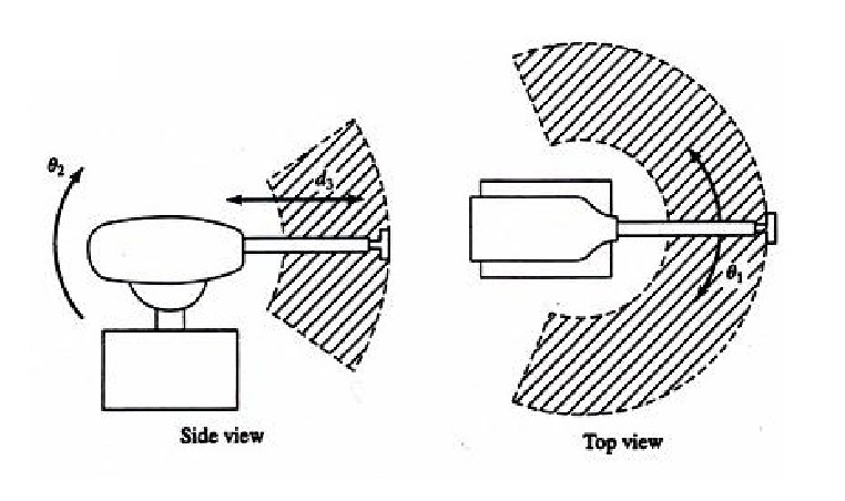 缺點(diǎn):它的手臂可以到達(dá)的空間受到限制,不能到達(dá)近立柱或近地面的空間;