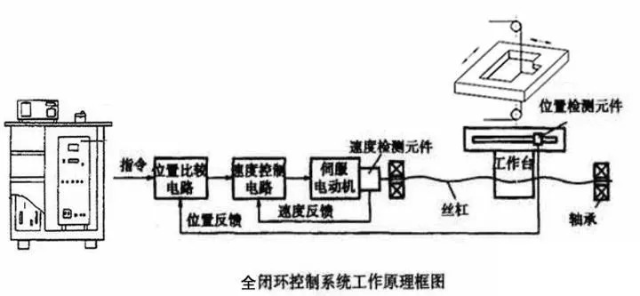 全閉環(huán)控制簡稱閉環(huán)控制(closed-loop control system)則是由信號正向通路和反饋通路構成閉合回路的自動控制系統(tǒng),又稱反饋控制系統(tǒng)。由伺服電機、比較線路、伺服放大線路、速度檢測器和安裝在工作臺上的位置檢測器(直線光柵尺)組成,通過軟件實時補償絲桿的精度誤差和換向回差,自動檢測并與指令值進行比較,用差值進行控制。