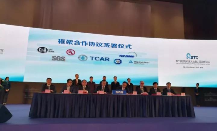 當(dāng)日,中國國家機(jī)器人檢測(cè)與評(píng)定中心(簡稱國評(píng)中心)與UL(美國保險(xiǎn)商實(shí)驗(yàn)室)、CSA(加拿大標(biāo)準(zhǔn)協(xié)會(huì))、SGS(瑞士通用公證行)、TUV(德國技術(shù)監(jiān)督協(xié)會(huì))等國際認(rèn)證機(jī)構(gòu)簽署合作備忘錄,加強(qiáng)機(jī)器人標(biāo)準(zhǔn)檢測(cè)認(rèn)證方面的國際合作。